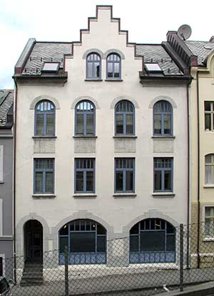 Jugendstil i Ålesund: Sivertsengården, Skaregaten 5 Denne gården ble oppført i 1907 for skreddermester Ole Bernhard Sivertsen fra Akerø ved arkitektene Michalsen & Dahl. Gården er oppført i pusset tegl over tre fulle etasjer, og har en høy, dominerende frontgavl. Gatefasaden er grunnleggende symmetrisk komponert, med unntak av første etasje. Den domineres av to store, kurvehankbuede butikkvinduer, flankert av et smalt, rundbuet inngangsparti. Åpningene er omkranset av kvaderfelter i puss, og har nøkkelstensimitasjoner øverst. Vinduene i etasjene over har enkle sålbenker, og i tredje etasje er brystningsfelter og overdekninger markert i rustikert puss. Gavlpartiet er avtrappet. Taket er skifertekket, og det er senere installert loftsvinduer. Stiluttrykket er en enkel jugendstil preget av senhistorisme. Ved folketellingen anno 1910 hadde gården 37 beboere fordelt på fem leiligheter. Her bodde gårdeier Sivertsen med familie, og blant leieboerne var strykerske Laura Engeseth, stuert Gerhard Olsen samt flere av skreddermester Sivertsens lærlinger. Frem til 1938 drev Olava Fiksdal pensjonat i gården. Da solgte hun den til Kinamisjonen, som etablerte avdelingskontor der.