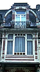 Denne bygningen er ganske typisk for Strauvens uttrykk både for bolighus og forretningsgårder. Den mangefargede teglsteinen er et typisk trekk.