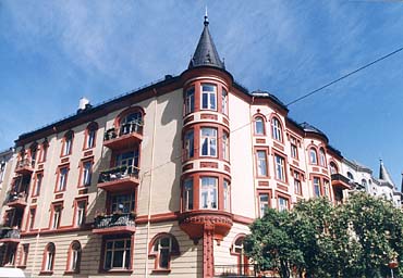 Jugendstil i Oslo: Oscars gate 63-65 I dette store leiegårdskomplekset viderefører arkitekten Kristen Rivertz de estetiske prinsipper han bygget på da han i 1896 utførte nabokompleket Riddervolds gate 10/Oscars gate 61 i en elegant historistisk stil. Nr. 63-65 er byggemeldt to år senere, og er utstyrt med lignende tårn som nabobygningen, men her kommer jugendstilselementer tilsyne som Rivertz skulle ta med seg til Ålesund seks år senere. Jugendmotivene finnes både i blomsterranker og i grupperingen av enkelte vinduer. Fasadene har større ensartede flater enn de typiske historistiske 1890-tallsgårdene.