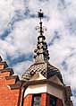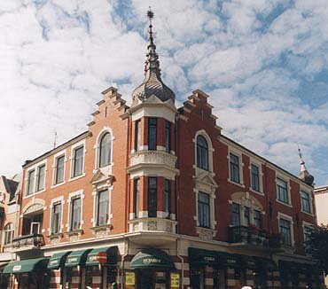 Jugendstil i Sandefjord: Apoteket Nordstjernen, Kirkegaten 8 Apoteket Nordstjernen ble oppført i 1900, like etter bybrannen i Sandefjord. Bygningen ble oppført etter tegninger av Kristiania-arkitekten Carl Michalsen, som også utformet den nye Sandefjord kirke. Nordstjernen ble bygget for apoteker Osvald Fredrik Bruun fra Horten. Bruun var bestyrer av apoteket i Sandefjord allerede i 1875, som han overtok ansvaret for etter apoteker Axel Chr. Krog. Han var allerede som 17-åring apotekerdreng hos Krog. O. F. Bruun var gift med Valborg Grønbeck, pleiedatter av Carl Schanke, sorenskriver i Tromsø. Apotekergården er en hjørnebygning til to gatehjørner utformet i en livlig blanding av hollandsk nyrenessanse og jugendstil, med fasader i rød tegl, og dekorerte felter i puss og stukk, med innslag av lysere tegl. En spesiell dekorativ oppmerksomhet er viet vinduenes brystningsfelter. Selve hovedhjørnet markeres kraftig av et hengende tårn der spiret er bekronet med en spennende smijernsutsmykning over den skiferkledte løkkuppelen. Tårnet flankeres av to trappegavler. Det andre hjørnet er mer forsiktig markert, med en liten kuppel.
