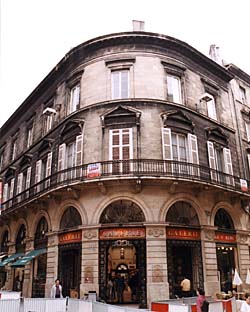 Bordeaux au XIXe siècle: Galeries Bordelaises Cette galerie donnant sur la rue Sainte-Catherine traverse en diagonale un immeuble à l'extérieur classique, comportant un angle arrondi avec une rangée d'arcades qui suivent la courbe de la façade. L'intérieur classique-romantique, avec un passage voûté entre deux rangées de boutiques, est influencé par l'architecture Renaissance de Florence et de Rome . Les Galeries Bordelaises furent commencées en 1830. Elles furent construites d'après les dessins de l'architecte Gabriel-Joseph Durand et sont l'une des dernières constructions classiques à Bordeaux. L'ensemble fut terminé en 1837. Le maître d'ouvrage était un négociant sud-américain très prospère, le marquis de La Torre. Aujourd'hui l'activité commerciale se poursuit dans cette galerie.